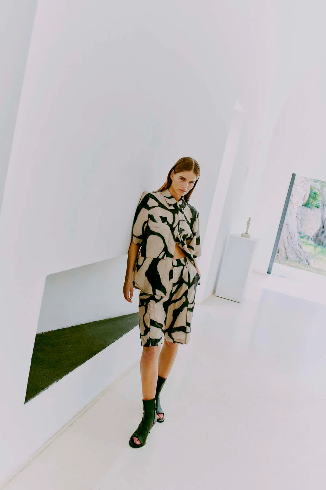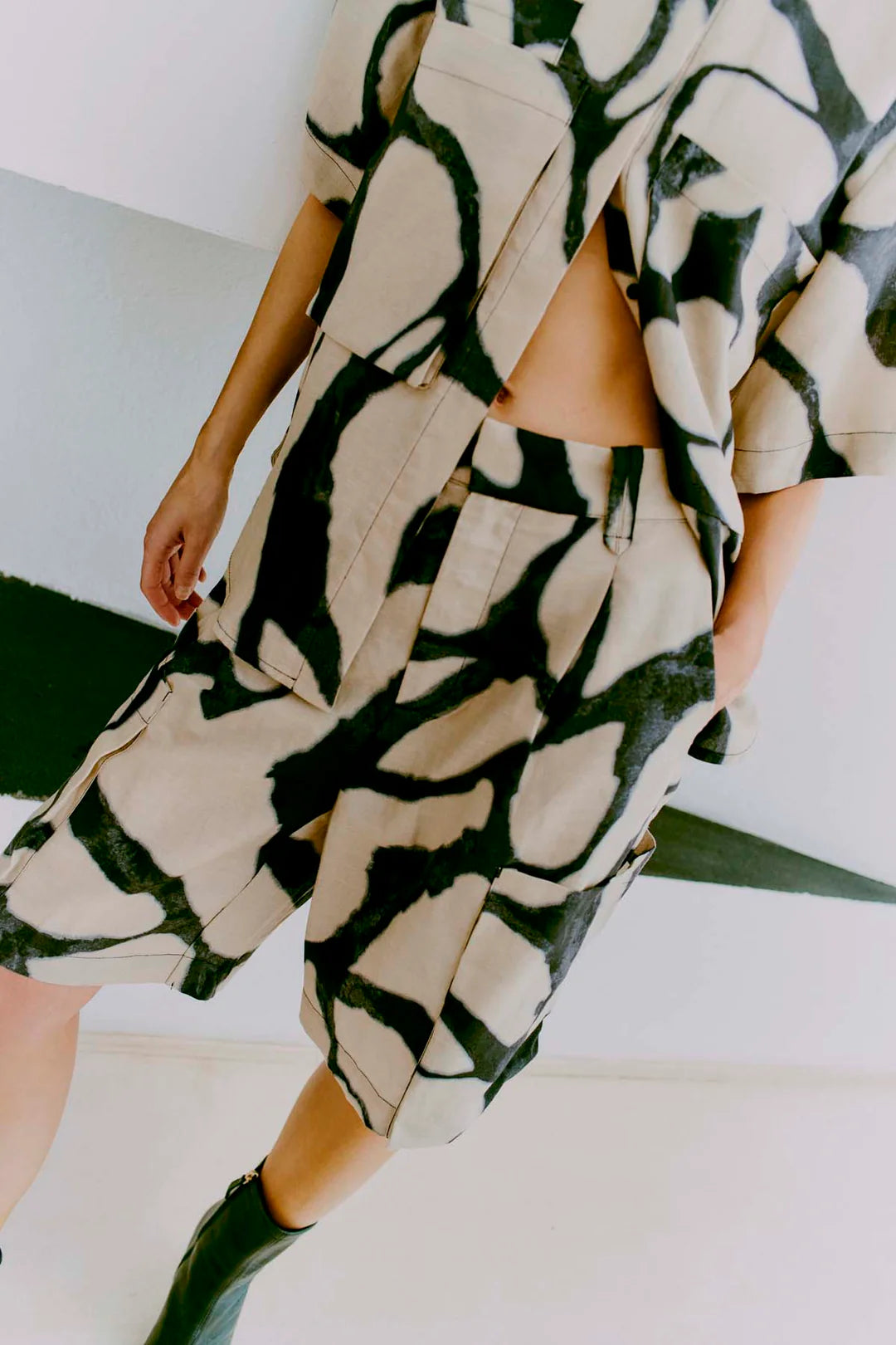 CMNatu high waisted shorts in beige/black